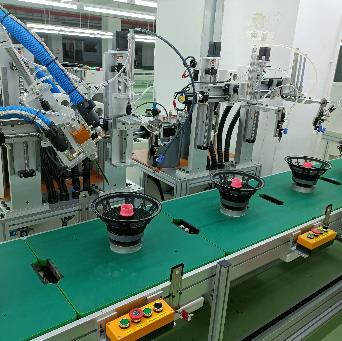本喇叭自动化生产组装线比较重要的结构的是定位装置,使喇叭在线上精确移动,不会抖动及偏移原来的位置。同时涂胶及取放机构采用高精度伺服电机控制配合高精度流量传感器,实现涂胶及取放的精确性,从而满足用户对精度的需求使自动线成品的良品率得到了很大的提升。 同时具配记忆存储功能,可对产品当前的整线工作设置点及配方进行建模存档,待下次生产时直接调出使用即可,避免人工调机耗时长、有一定的技能水平的要求,,一方面提升了产品品质,另一方面又节省了人工成本,将喇叭的质量推上了另一个台阶。